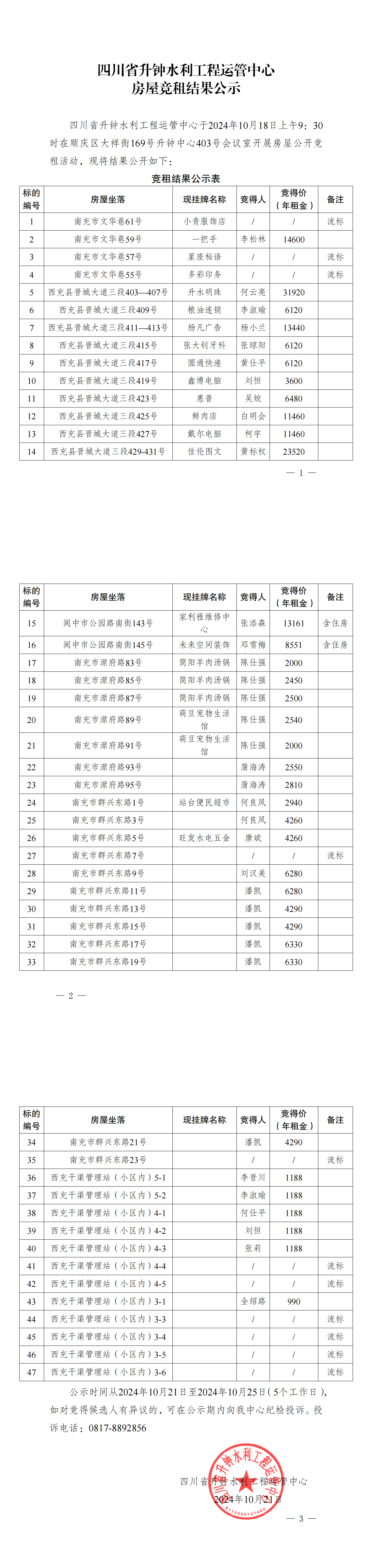 四川省升鐘水利工程運(yùn)管中心房屋競(jìng)租結(jié)果公示
