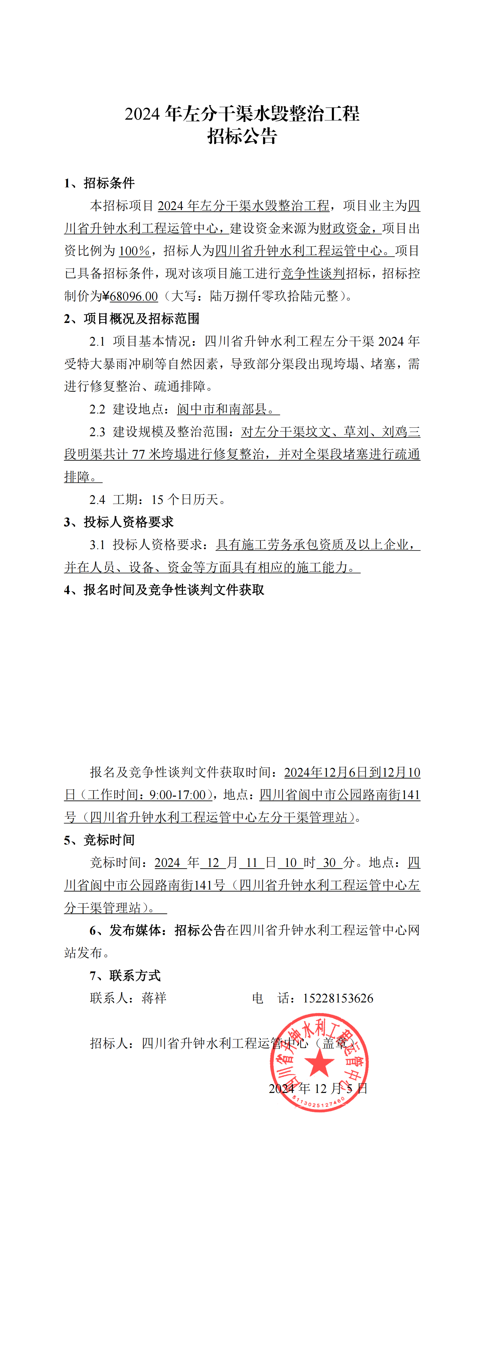 2024年左分干渠水毀整治工程招標(biāo)公告