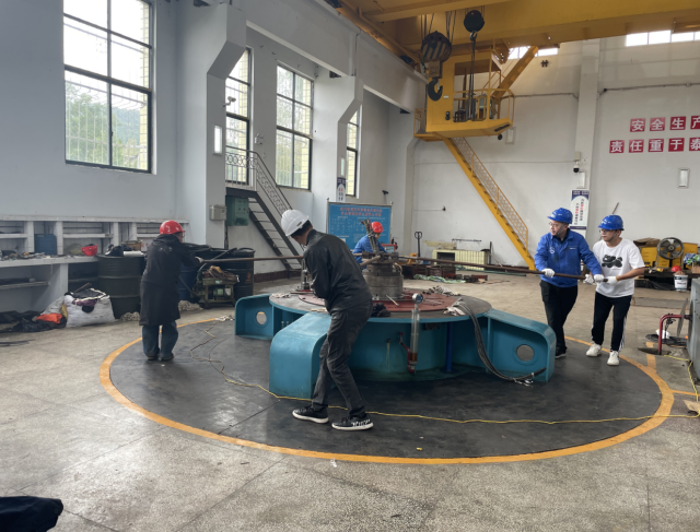 鳳鳴電站發(fā)電機(jī)組因受到35KV鳳橋線輸變電線路雷擊事件影響,造成機(jī)組滿負(fù)荷運(yùn)行時(shí)突然解列、機(jī)組事故停機(jī)、轉(zhuǎn)子出現(xiàn)接地故障。經(jīng)過現(xiàn)場檢查分析,確認(rèn)故障原因?yàn)檗D(zhuǎn)子本體絕緣層受損。 為徹底處理鳳鳴電站轉(zhuǎn)子接地故障,及時(shí)消除設(shè)備隱患,確保設(shè)備安全運(yùn)行,11月3日正式開始對鳳鳴電站轉(zhuǎn)子接地故障進(jìn)行檢修。經(jīng)過機(jī)組拆卸、故障查找、故障處理、轉(zhuǎn)子定子試驗(yàn)、機(jī)組回裝、整機(jī)試驗(yàn)、預(yù)防性試驗(yàn)合格等步驟,檢修工作于12月3日順利完成,并及時(shí)投入發(fā)電生產(chǎn)。截至目前,鳳鳴電站全年發(fā)電85天,超額完成年度目標(biāo)任務(wù)。