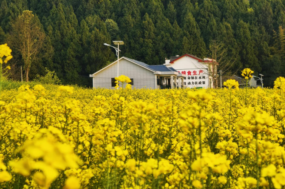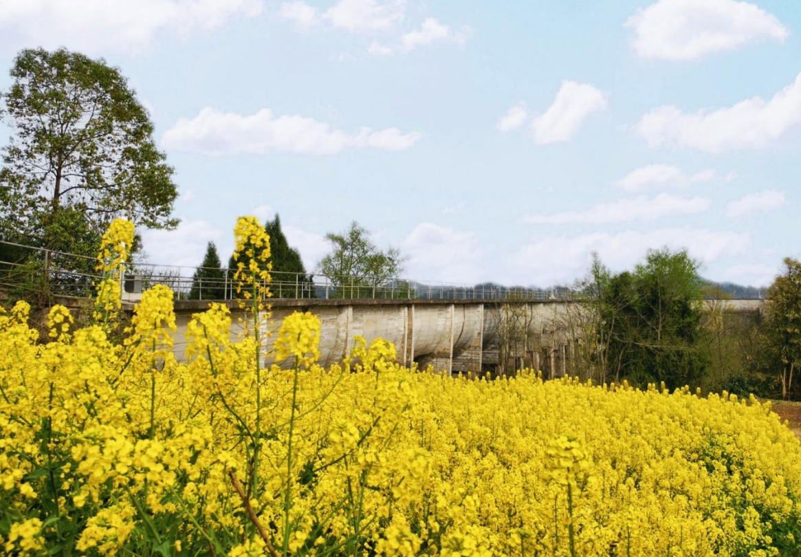 菜花金黃映暖陽 升鐘水利潤?quán)l(xiāng)邦 春耕春灌興農(nóng)事 待到秋收糧滿倉 |