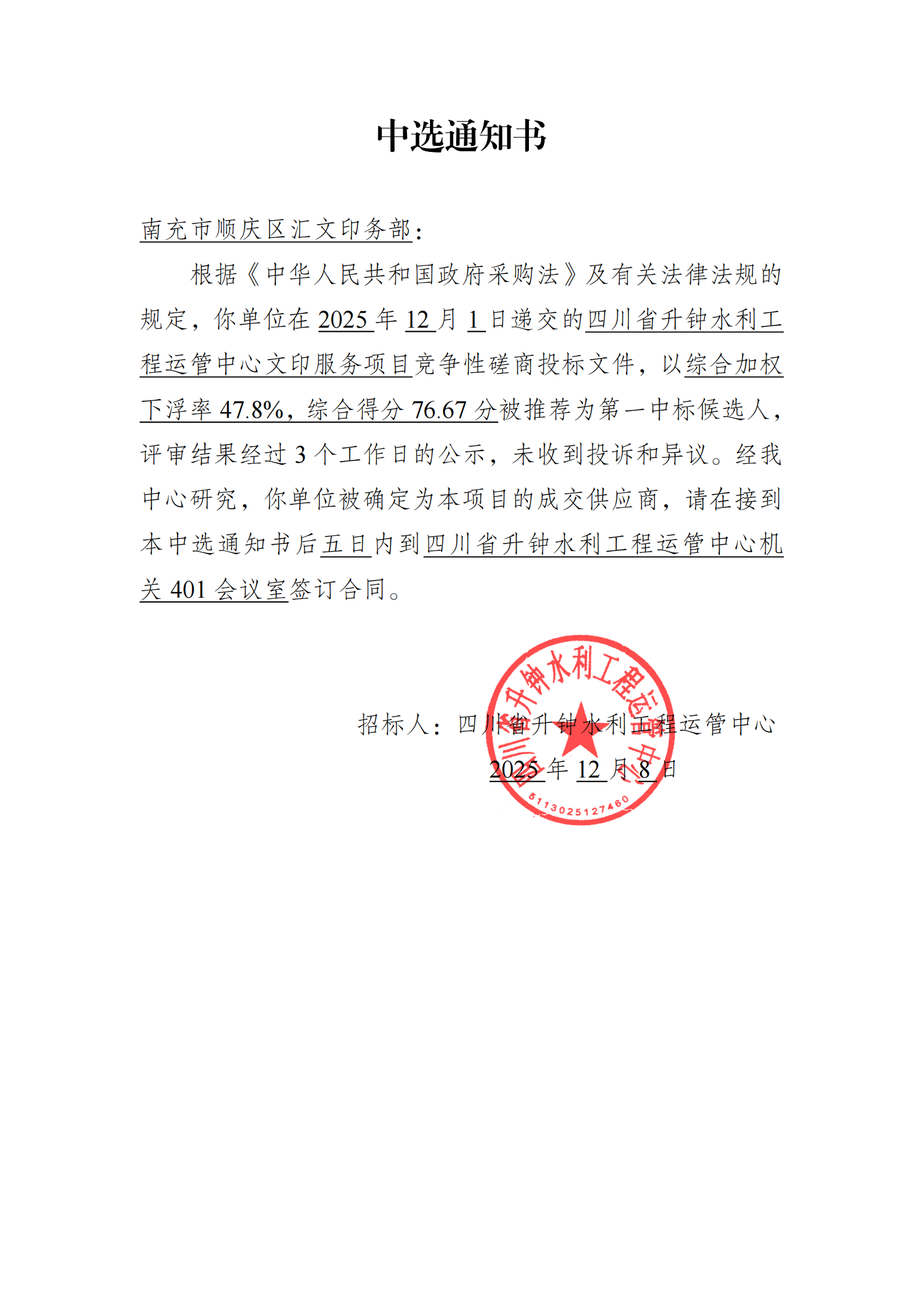四川省升鐘水利工程運(yùn)管中心房屋競(jìng)租結(jié)果公示