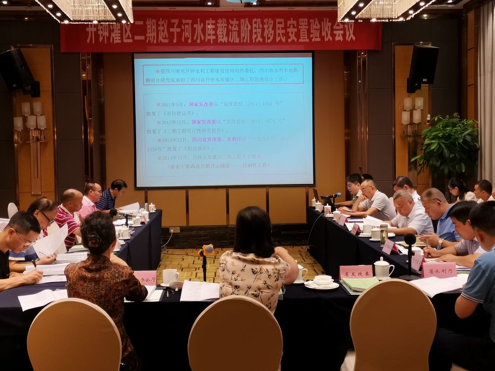 近日,升鐘二期工程趙子河水庫(kù)截流驗(yàn)收終驗(yàn)驗(yàn)收會(huì)在成都召開,省政府組織由省辦公廳:省扶開局、省發(fā)改委、水利廳和南充市人民政府的驗(yàn)收委員會(huì),對(duì)截流階段工作開展驗(yàn)收。通過一些列驗(yàn)收程序,驗(yàn)收委員會(huì)研究認(rèn)為:升鐘二期工程趙子河水庫(kù)移民安置工作具備節(jié)流階段移民安置驗(yàn)收條件,同意通過終驗(yàn)。 會(huì)后,省扶貧開發(fā)局已向省人民政府請(qǐng)示同意批復(fù)升鐘二期工程截流階段移民安置終驗(yàn)。