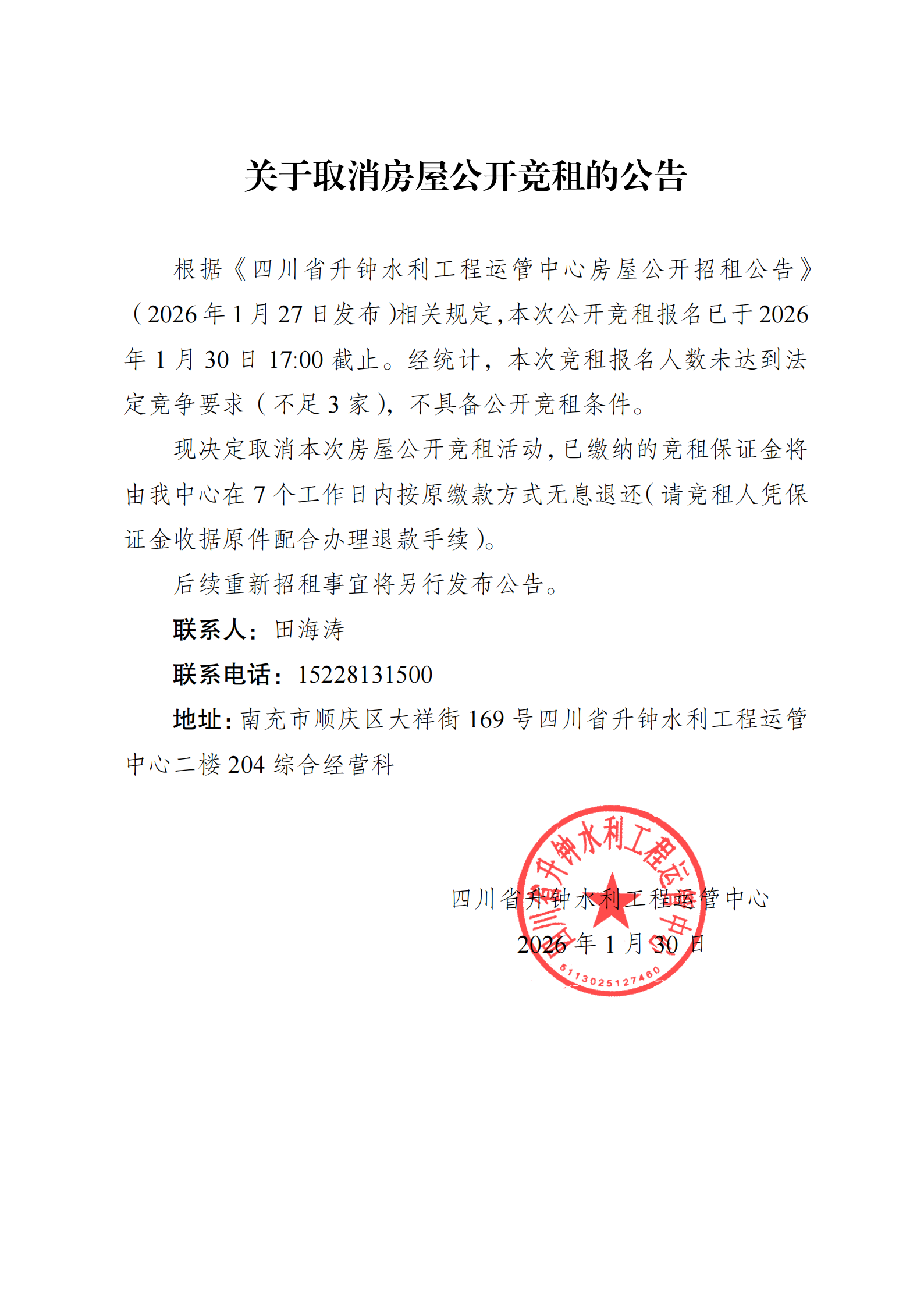 四川省升鐘水利工程運(yùn)管中心房屋競租結(jié)果公示