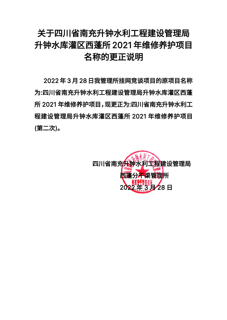 西蓬所2021年維修養(yǎng)護項目名稱的更正說明