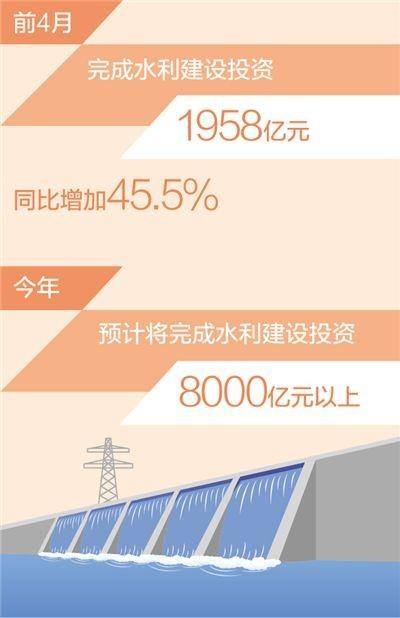 隨著吳淞江整治工程(江蘇段)開工,今年以來重大水利工程已經(jīng)開工10項,投資規(guī)模超500億元。前4月,我國已完成水利建設(shè)投資1958億元,較去年同期增加45.5%。