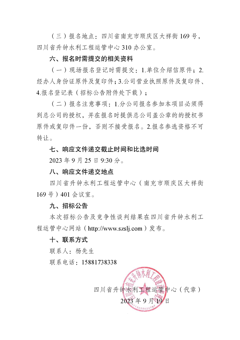 四川省升鐘水利工程運管中心房屋競租結果公示
