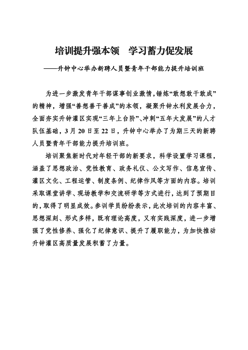 ——升鐘中心舉辦新聘人員暨青年干部能力提升培訓班