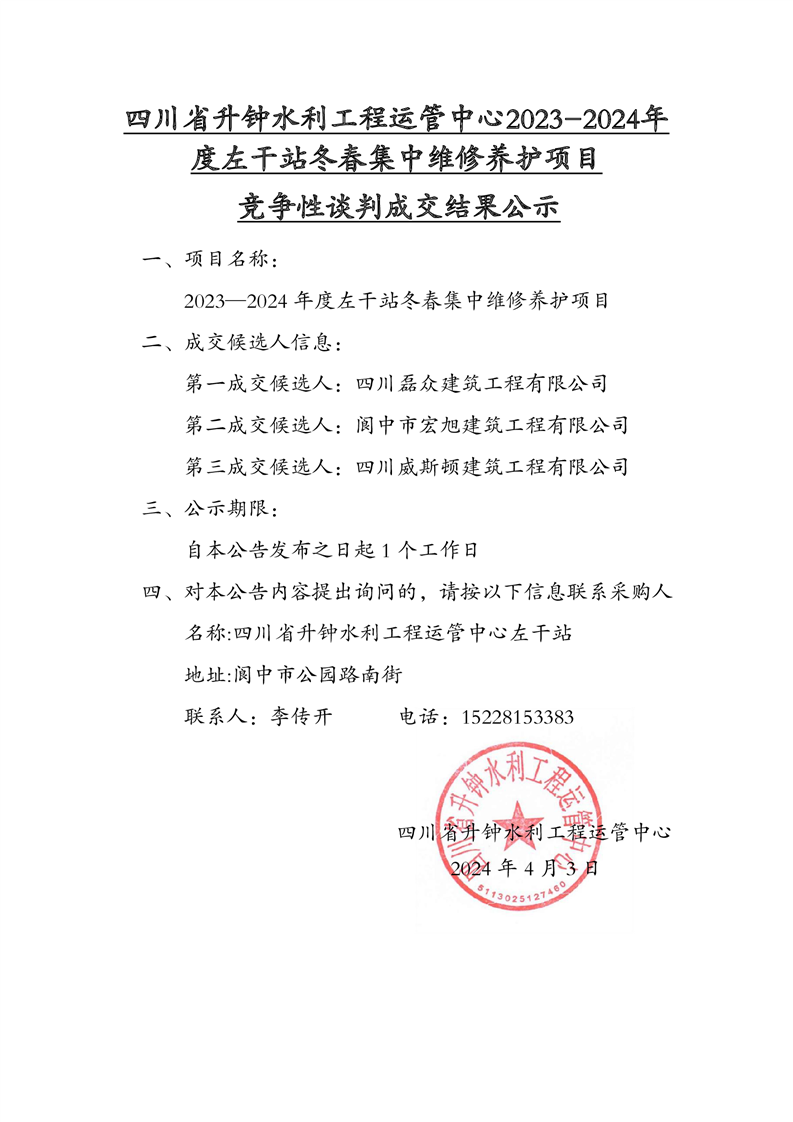 | 2023-2024年度左干站冬春集中維修養(yǎng)護(hù)項(xiàng)目競(jìng)爭(zhēng)性談判成交結(jié)果公示 |